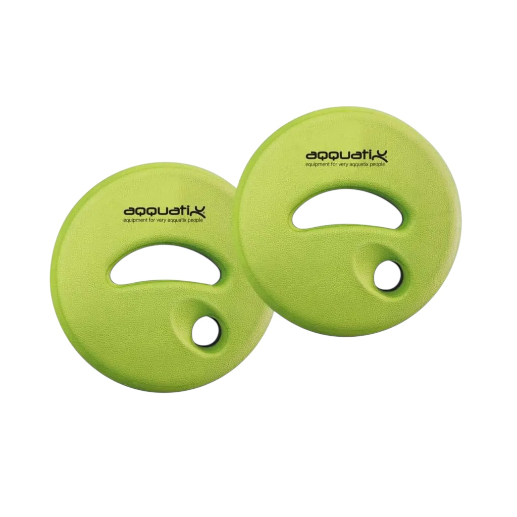 De stærke aqua discs er designet til træning af overkroppen. Sæt tommelfinger i det lille hul og de øvrige fingre i det store hul og træn styrke for arme og skuldre, bryst og øvre ryg.